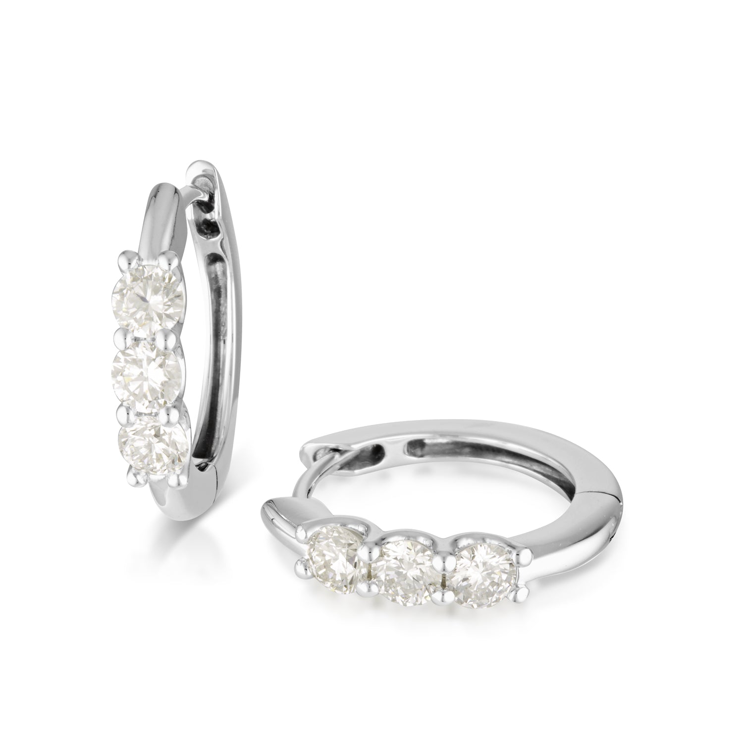 Lab Grown Diamond 3 Stone Huggies – White Gold