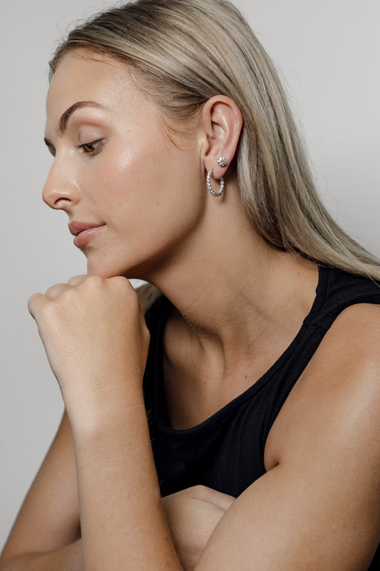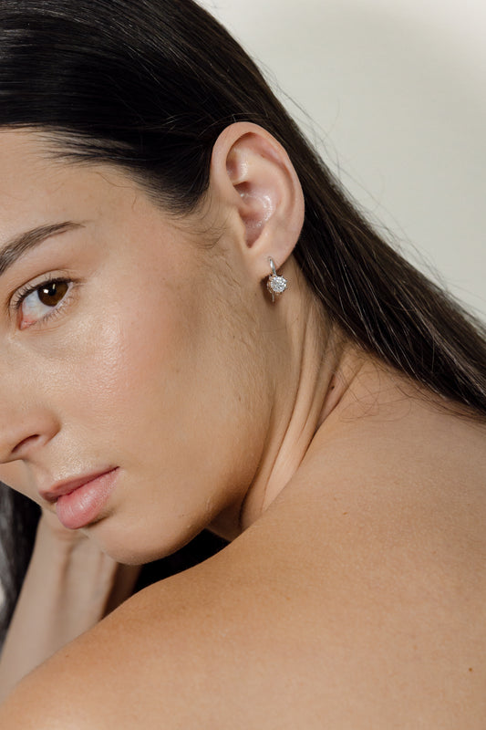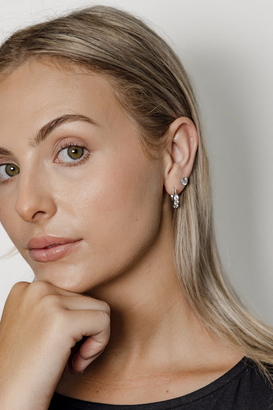 Lab Grown Diamond 3 Stone Huggies – White Gold