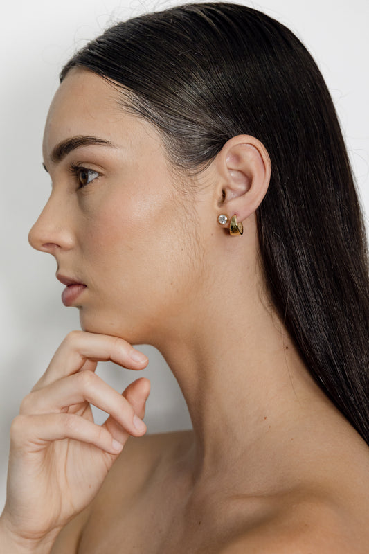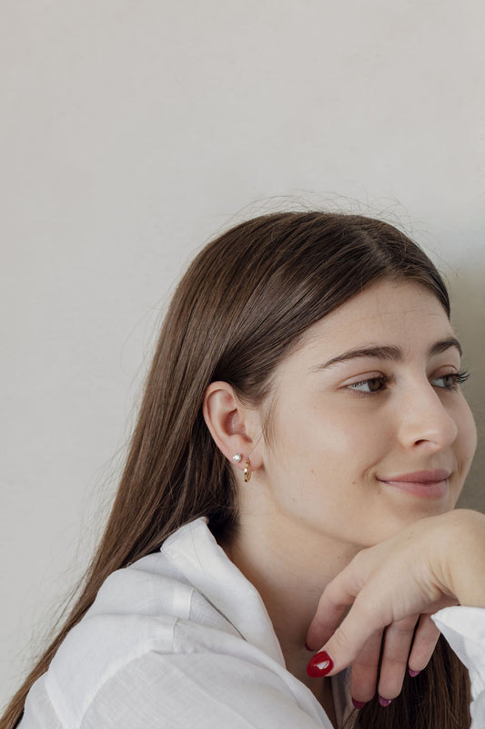 Lab Grown Diamond 3 Stone Huggies – Yellow Gold